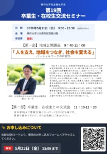 | 2024年02月07日 | キャリアイベント | 社会福祉学科で就職懇談会を実施! ~社会福祉士として働く卒業生よりアドバイス~ |