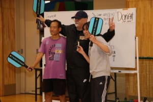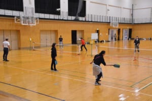 午前中は学生と講師・学習者の方とペアを組み、ピックルボール対決をしました。