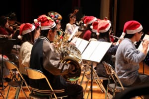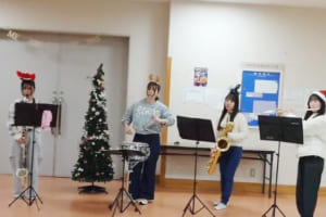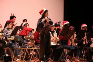 12月18日(木曜)、FMみまさか、軽音楽部、吹奏楽部による合同ライブが開催されました。吹奏楽部と軽音楽部による共演はこれまでにもありましたが、3団体がそろってのライブは今回が初めて。吹奏楽部には津山高専の学生も参加し、学生同士の交流が広がる機会となりました。