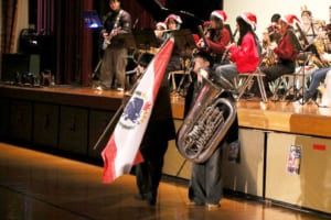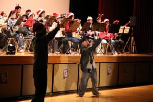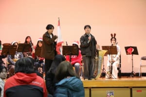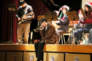 会場の体育館では、開演前に吹奏楽部の演奏が行われ、来場者をあたたかく迎えていました。