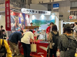 当日は、調理師会の学生が開発に携わった、鏡野町の洋菓子店「パティスリーWAKANA」による「山果実のバターサンド」をはじめ、鏡野産のスパイス、ミマダインのオリジナルグッズなどを販売しました。ブースには多くの来場者が訪れ、学生たちは来場者との交流を通じて、鏡野町の魅力を広く発信しました。
