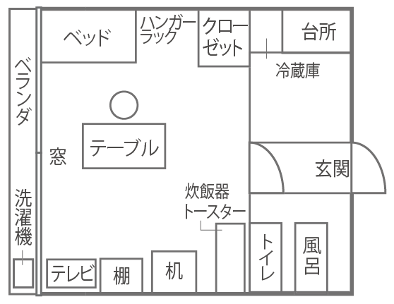 一人の時間が欲しかったのでアパートを選びました。家具付きなので引っ越しの準備も少なくすみました。一人で家事をこなすのは大変ですが、自由に趣味や勉強に時間を使えるので楽しく過ごせています。また、さまざまな手続きなども自分でやるので生活スキルがついたと思います。スーパーが近く買物に便利ですが、買いすぎを防ぐため1週間分の献立を立てるようにしています。