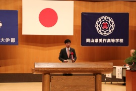 藤原修己理事長は挨拶の中で、「美作学園は、限られた人しか進学できない時代に、苫田郡教育会と地域の皆様が苦心の末に設立した、言わば『地域立』の学校として産声を上げました」「地域の暮らしを支える人づくり、地域に貢献できる人づくりのために美作学園は今後もプライドとこだわりを持って前進します」と、さらなる飛躍を誓いました。