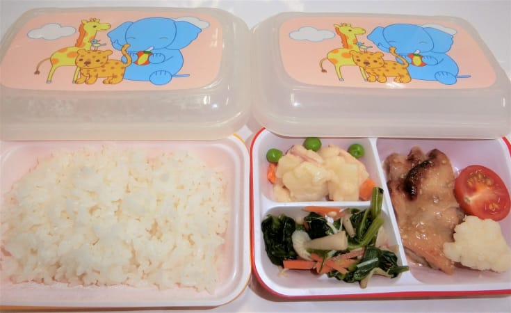 ご飯・鶏肉のごまみそ焼き・トマト・カリフラワー・じゃがいものチーズ煮・ほうれん草ときのこのナムル