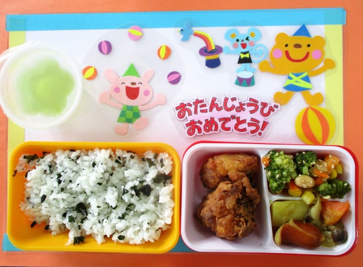 ・わかめご飯・鶏肉のからあげ・ポトフ・ブロッコリーと大豆のサラダ・ゼリー