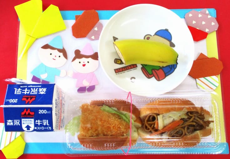 ・調理パン(白身魚フライ・焼きそば)・バナナ・牛乳