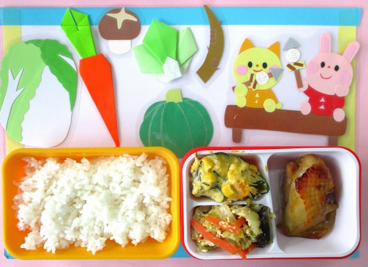 ・ご飯・鶏肉のカレー焼き・白菜と油揚げの卵とじ煮・かぼちゃとひじきのサラダ