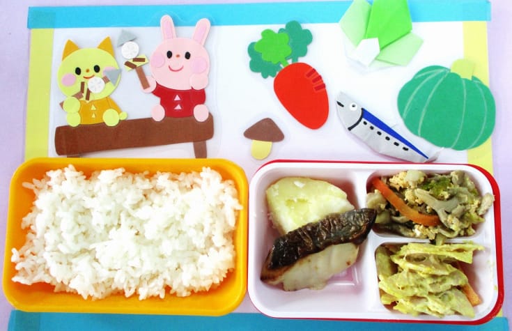 ・ご飯・銀ひらすの西京焼き・こふき芋・白菜と舞茸の卵とじ煮・れんこんとカレーツナマヨ和え