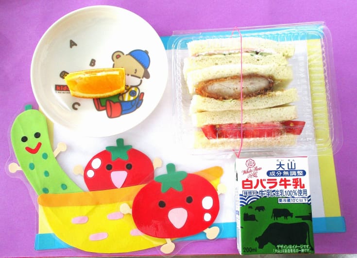 ・サンドイッチ(トンカツ・トマトレタス・ハムきゅうり)・オレンジ・牛乳