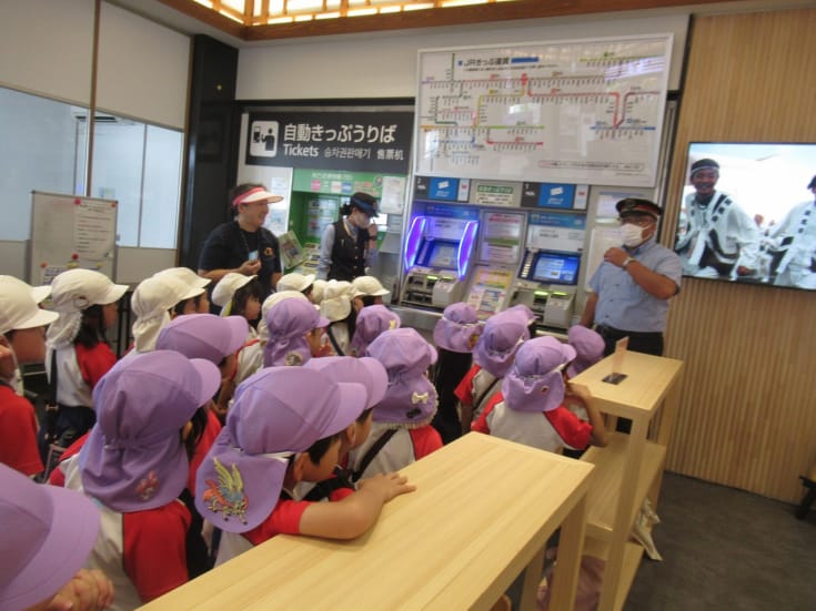 9月30日(火曜日)年長児が列車体験をしました。駅員さんに説明を受け自分で切符を買い、津山駅から亀甲駅まで列車に乗る経験ができました。列車に乗ることを登園時から楽しみにしていた子ども達。改札を通り列車が見えると目を輝かせ、列車の中ではマナーを守りながら楽しいひと時を過ごすことができました。初めての体験だった子ども達もおりうれしい列車体験となりました。