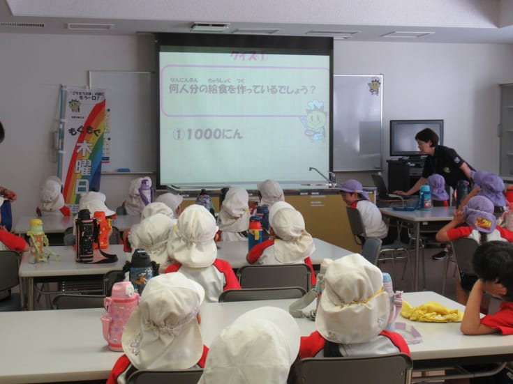 10月1日(水曜日)年長組が戸島学校給食センターへ出かけました。厨房の見学・給食に関するクイズ・試食を初めての場所でわくわくしながら体験させていただきました。大勢の給食を一生懸命作って下さる様子を見て「残さず食べる!」という声も聞かれました。この日のメニューは子ども達の大好きな塩ラーメンで喜んでいただきました。栄養を考えた献立作成や調理をして下さっていることを知り、感謝の気持ちを持つきっかけとなった年長児でした。