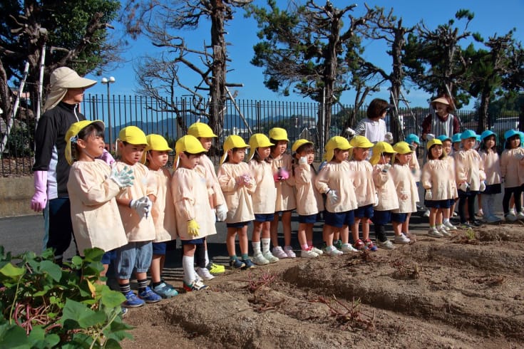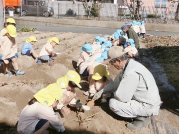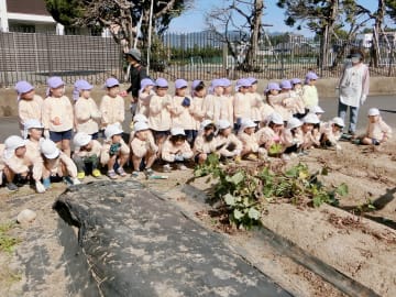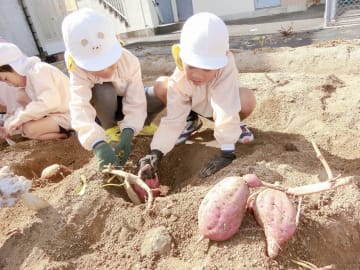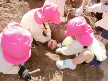 10月24日(金曜日)幼稚園の「なかよし農園」で学年ごとに芋掘りを楽しみました。暑い夏を越したさつま芋は一株ごとに大きな大きな芋が入っており、友だちと力を合わせて掘り出す子ども達もいました。収穫したさつま芋は給食の献立にこれから次々と活用され、楽しみにしている子ども達です。