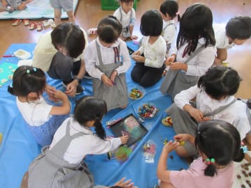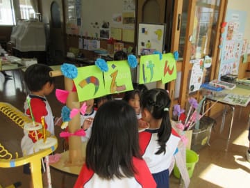 子ども達のこれまでの遊びがもっとわくわくしたものになるしかけや計画がたくさんのわくわくウイーク。獅子舞いや制作物が縁日の遊びにつながり、踊ったり、楽器を鳴らして歩いたり、売り買いのやり取りを楽しんだり、色々なものを作ったり、園外に出かけ秋の自然物もたくさん拾ったり、触れたりすることができました。豊かな遊びが色々な気づきや学びにつながりますように。