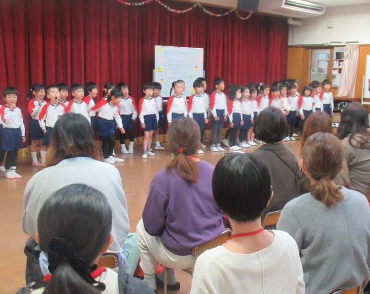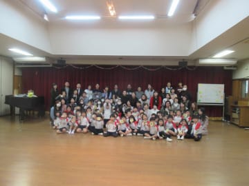 3月4日(水曜日)年長組が親子でお別れ会を行いました。それぞれが「ありがとう」の気持ちを持ち参加し、ゲームやダンス、歌等で親子で楽しいひと時を過ごしました。子ども達からは大好きな家族の方へ世界に一つだけの子ども達手作りのトートバッグをプレゼントし、保護者の方からは子ども達へサプライズでメダルのプレゼントがあり、嬉しさで笑顔も花も満開でした。お忙しい中ご参加下さった皆様、ありがとうございました。