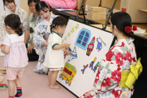 毎年、学生が浴衣や甚平を着て登校し、キャンパスを華やかに彩ります。教員も浴衣を着て授業を行うなど、学生と教員が一体となってイベントを楽しみました。