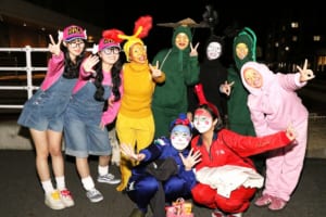 本行事は2009(平成21)年に学生有志によって始まり、今年で17回目を迎え、全学行事として定着しております。期間中、教員も授業前に仮装してお菓子を配ったり、ゼミ単位でそろいの衣装を着て登校したりと、学生と教職員が一緒に盛り上がる姿が見られました。
