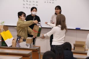 メインイベントは豪華なプレゼントが当たるビンゴ大会です。人気ショップの美容グッズやお米などが景品として用意され、当たった学生たちは大はしゃぎでした。