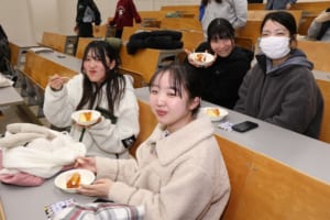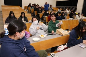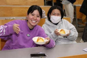 このイベントは寮生たちが運営する自治会主催で実施されました。参加した学生たちに藤原理事長よりケーキが振舞われ、皆で美味しくいただきました。