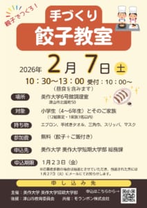 2026年2月7日(土曜)、『親子でつくろ!手づくり餃子教室』が美作大学で開催されます。