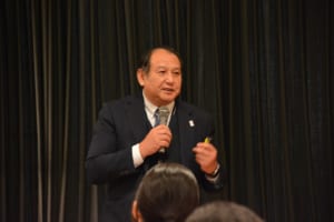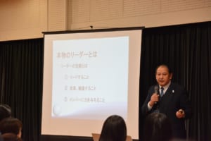 続いて、美作高等学校 校長の早瀬直紀先生より、リーダーシップについてご講話いただきました。