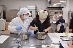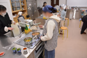 調理実習は、美作大学短期大学部栄養学科の住吉友香助教が担当しました。