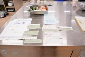 子どもたちは、これから作る5品(ごはん、肉じゃが、豆腐の味噌汁、きゅうりのゆかり和え、チョコレートプリン)の調理手順を分解したカードを使い、自分たちだけで順序を考えて並べ替えました。