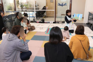 今回は、ハロウィンの時期に合わせて会場をカボチャやこうもりなどの飾りで彩りました。参加してくれたお子さんの中には仮装をして来てくれた子もいて、おばけが出てくる絵本を読んだり、ハロウィンにちなんだミニゲームを行ったりして楽しみました。