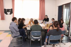 また、学生たちが子どもたちと一緒に遊ぶ時間のあいだ、保護者の皆さまには「Tea Time」として、ゆったりとお茶を楽しみながら語り合っていただいたり、育児に関することなどを教員に相談したりできる時間を設けました。