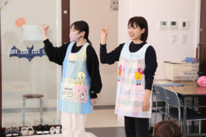 今回は、ハロウィンの時期に合わせて会場をカボチャやこうもりなどの飾りで彩りました。参加してくれたお子さんの中には仮装をして来てくれた子もいて、おばけが出てくる絵本を読んだり、ハロウィンにちなんだミニゲームを行ったりして楽しみました。