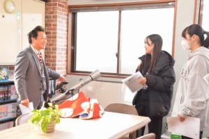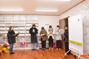 その案内役の職員の中に、2015年3月に本学の幼児教育学科を卒業した林田夏捺さんの姿がありました。林田さんは保育士として新卒で立正青葉学園に勤務を始め、今年で10年目を迎えます。後輩である学生たちに、各施設での役割や日々の業務について丁寧に説明してくださいました。学生からは外出時のルールなど、実践的な質問も積極的に飛び出し、活発な意見交換が行われました。