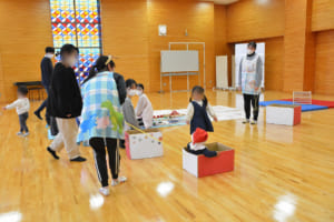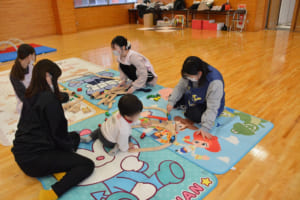 学生たちは、訪れた親子が楽しみながら過ごせるよう、さまざまな遊びのコーナーを企画・準備しました。