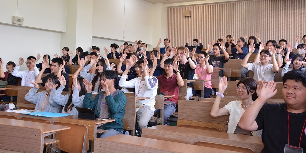 授業には、津山工業高等専門学校(津山高専)の留学生と教員の皆さん、そしてタイ高等専門学校(タイ高専)の学生・教員が参加。