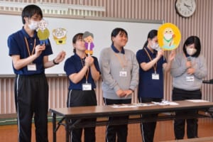 学生たちは歌やクイズを交えながら発表を行い、参加者の笑顔が広がりました。