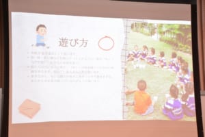 続いて、津山高専で学ぶクロアチア、タイ、マレーシア、インドネシア出身の留学生が登壇し、それぞれの国の子どもの遊びを紹介。