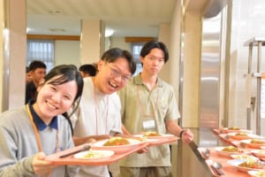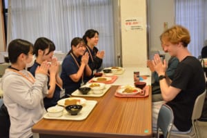授業のあとは、学内の食堂で夕食にドライカレーをいただき、その後は英語交流会も行いました。