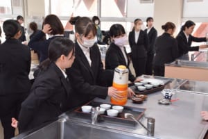 また、お茶のおもてなしをテーマにした実習では、実際にお茶の入れ方や出し方、出された際の飲み方についても体験的に学び、相手を思いやる所作の大切さを実感する機会となりました。