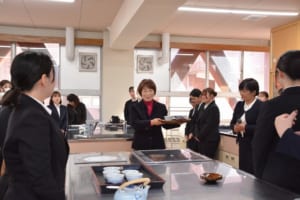 また、お茶のおもてなしをテーマにした実習では、実際にお茶の入れ方や出し方、出された際の飲み方についても体験的に学び、相手を思いやる所作の大切さを実感する機会となりました。