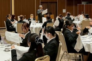 食物学科1年生「ザ・シロヤマテラス津山別邸」でテーブルマナー講習会を実施