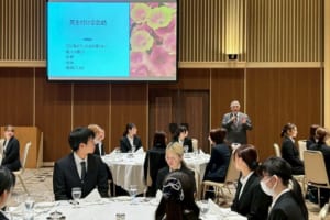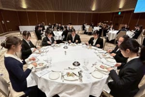 ホテルで実際に提供されている本格的なコース料理を味わいながら、学生たちは教えていただいた作法を一つひとつ確認していきました。美しい盛り付け、香り豊かな料理、繊細な味わいを通して、料理が持つ力を体感する貴重な機会となりました。