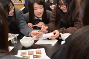 見た目には発色剤が含まれていないように見える食品から検出されたり、反対に含まれていそうで検出されなかったりと、結果には意外な発見も多く、生徒たちは食品表示や安全性について理解を深めていました。