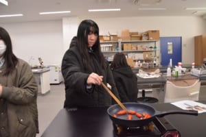 実験後、使用しなかったソーセージやウインナーは、食品ロスを出さないように配慮し、おいしくいただきました。食品の安全だけでなく、食を取り巻く課題についても考える機会となりました。