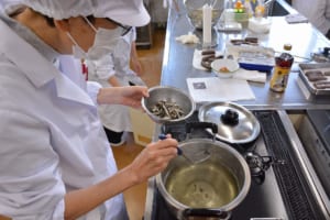 限られた調味料の中で素材の味を生かす工夫や、昔ながらの出汁のとり方、煮物の味付けなど、現代の調理とは異なる知恵に学生たちは驚きと発見を重ねていました。