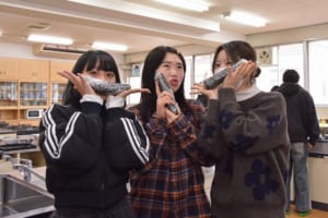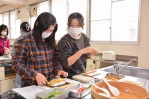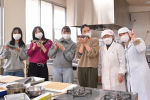 仲の良い栄養学科の学生たちの明るい笑い声が調理室に広がり、2年間で培われたチームワークの良さが感じられる、和やかな時間となりました。