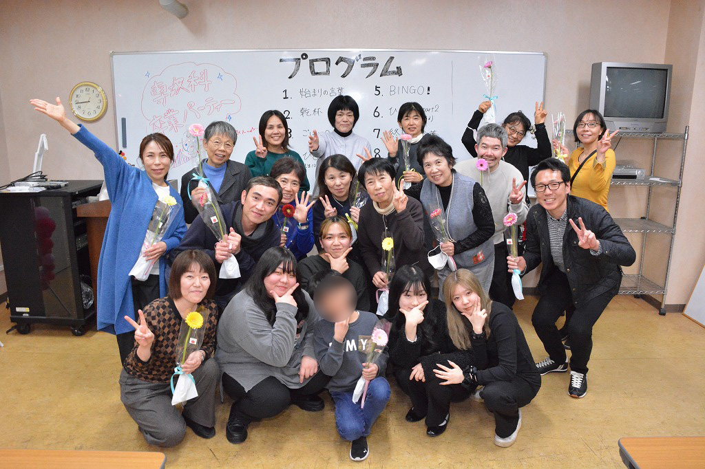 学内の教室で行われた今回の卒業パーティーは、専攻科としての歩みを締めくくるにふさわしい、心に残るひとときとなりました。