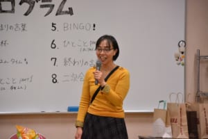 景品は二本立てで、参加者がそれぞれ持ち寄ったプレゼントと、事前に用意されたビンゴ景品を組み合わせた内容となりました。持ち寄りプレゼントはくじ引きで、外れのないビンゴ大会で盛り上がりました。