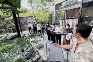 見学した学生たちは、「通いたくなる工夫がたくさんあって、利用者が楽しみながら過ごせる施設だと感じました」「露天風呂や炭酸泉など、入浴方法が選べるのも魅力的!」と感想を語っていました。