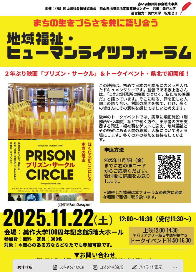 この取り組みは、11月22日に予定している映画「プリズン・サークル」上映に向けた学習の一環として実施したものです。