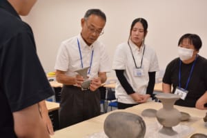 講義では本物の発掘された出土品も持参され、参加者は実際に触れながら、津山の歴史を体感することができました。