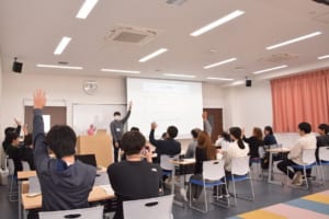 「きんちゃい みまさかれっじ」とは、学習の機会の少ない知的障がいのある方を大学に招いて講義を受けてもらう活動です。2015年から始め、毎年開催しています。障がい者福祉を学んでいる社会福祉学科の薬師寺明子教授のゼミ生が中心となり、知的障がいのある方が大学で講義を受け、そこで得た知識や経験をこれからの生活に活かしてもらうことを目的に実施しており、本学社会福祉学科の学生が運営を行いました。