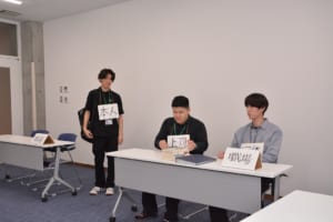 軽演劇を見た高校生たちは、三つの班に分かれてグループワークを実施しました。各班には大学生と支援センターの職員が加わり、講義や演劇を通して気づいたことや感じたことを共有しました。高校生と大学生が互いに意見を交わす中で、「働くこと」や「人との関わり方」について理解を深める時間となりました。